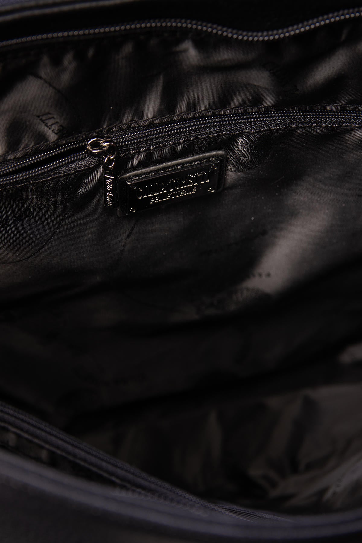 Rankinės vidus: 1 pagrindinis skyrius, pertvara su užtrauktuku, 2 atviros šoninės kišenėlės, šoninė su užtrauktuku