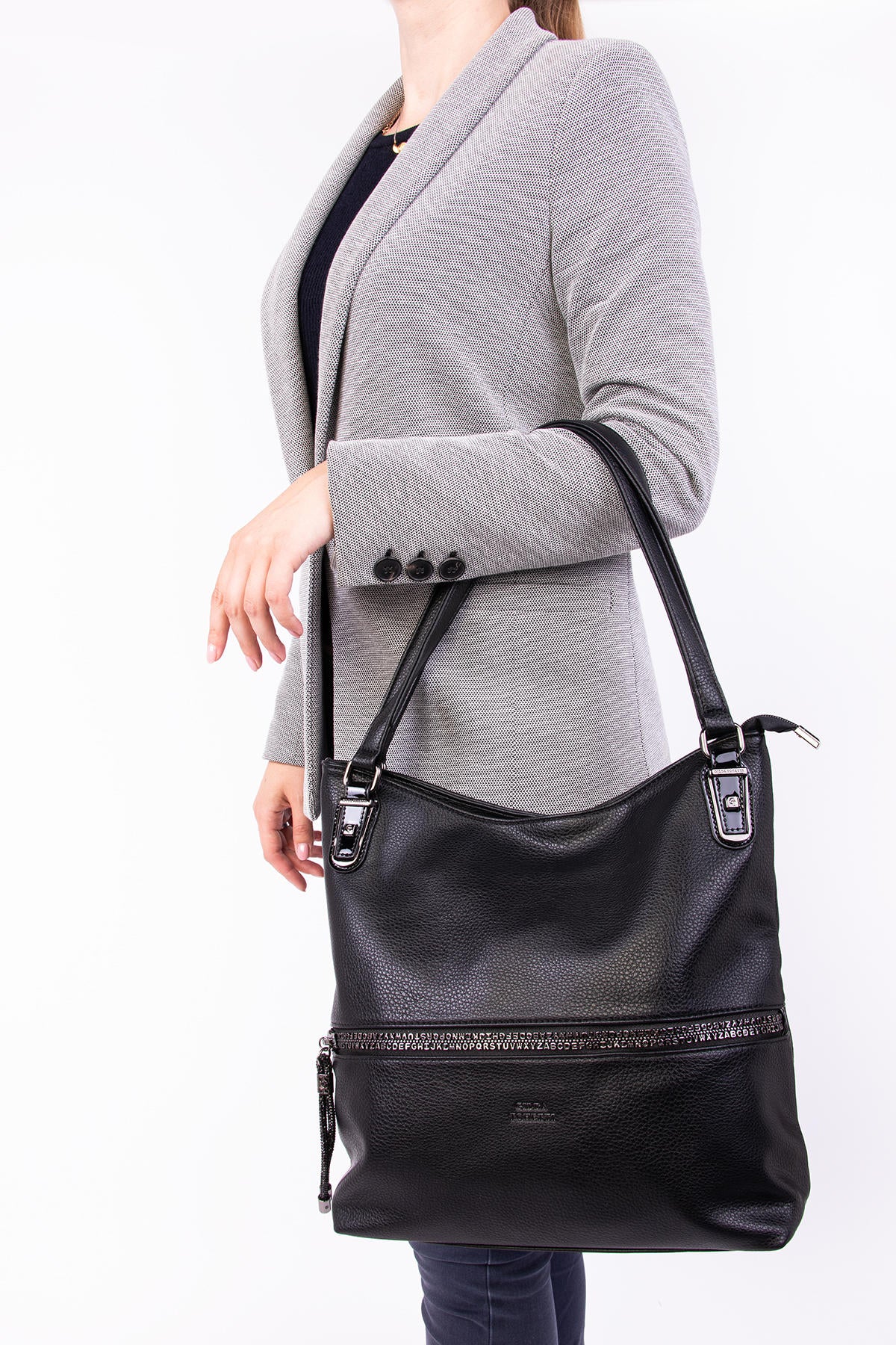 Rankinės išorė: Užtraukiamas skyrius nugarėlėje ir priekyje.