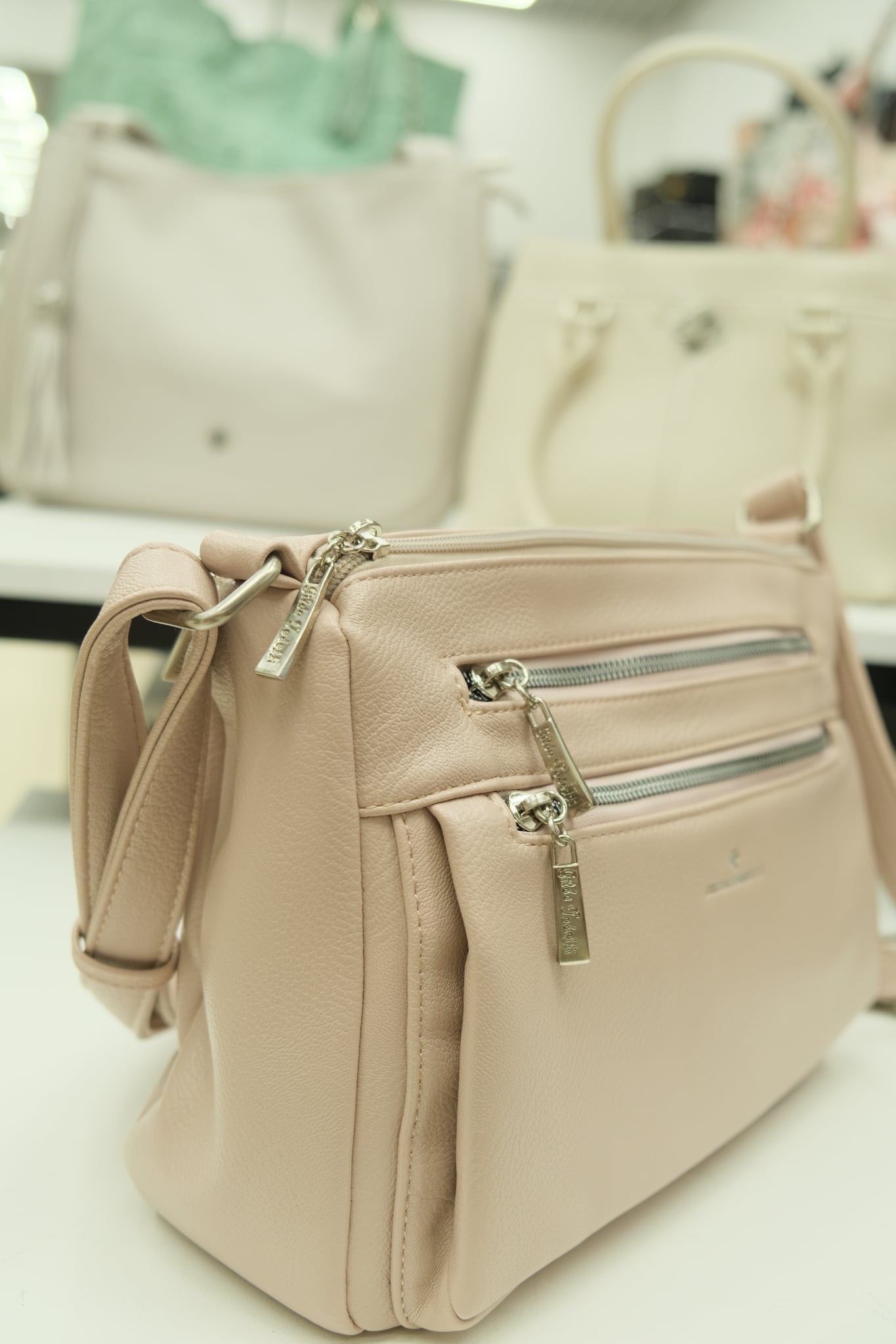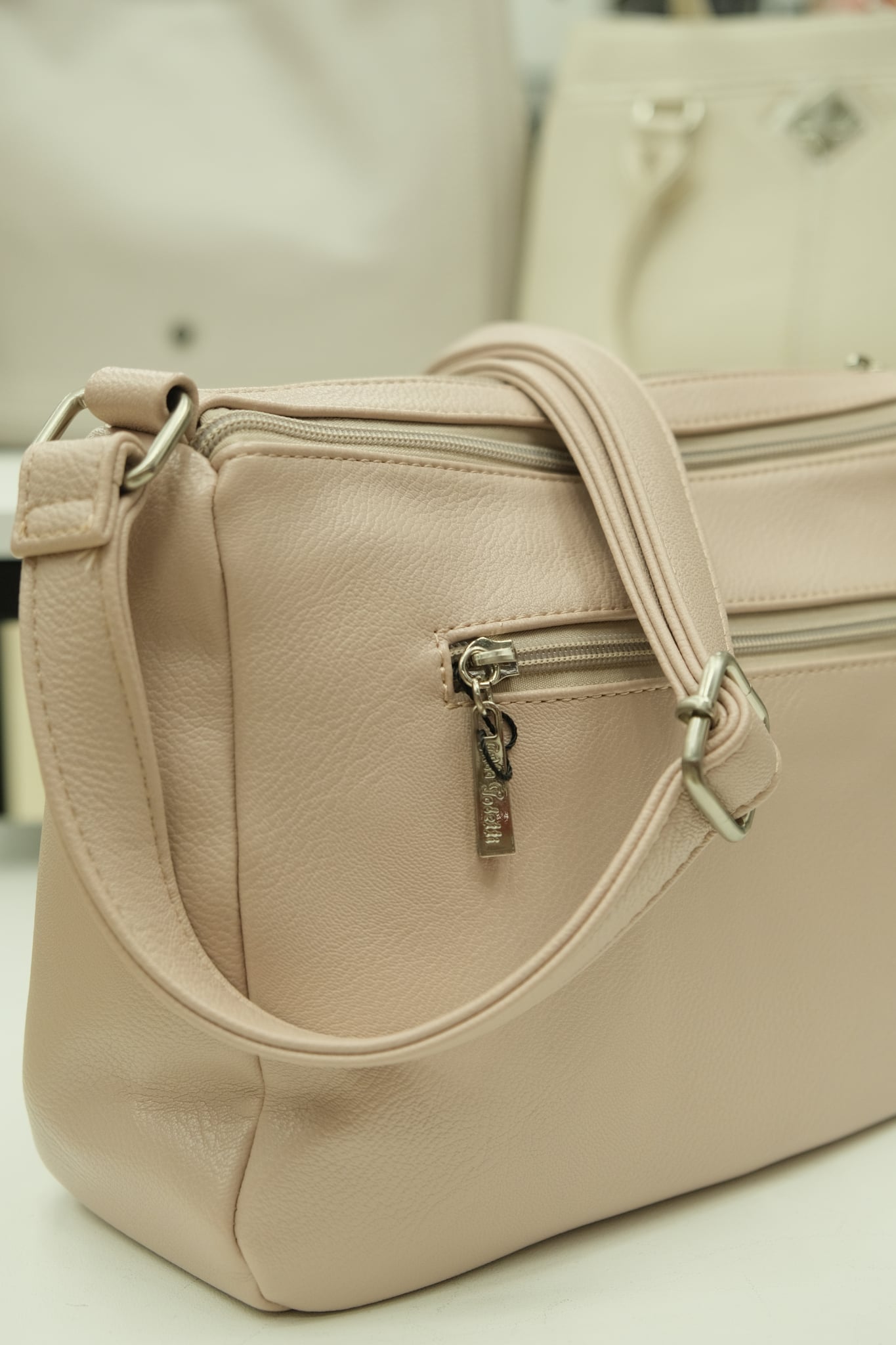 Patogi ir stilinga rankinė per petį, puikiai tinkanti kasdieniam naudojimui. Reguliuojamo ilgio dirželis užtikrina komfortą nešiojant. Priekyje – dvi atskiros kišenės, gale – viena užtraukiama kišenė daiktams saugiai laikyti.